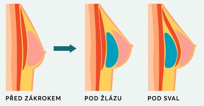 Plastický chirurg může klientce nabídnou tři typy vedení řezů při augmentaci prsů. Nejčastěji se vede řez pod prsem.