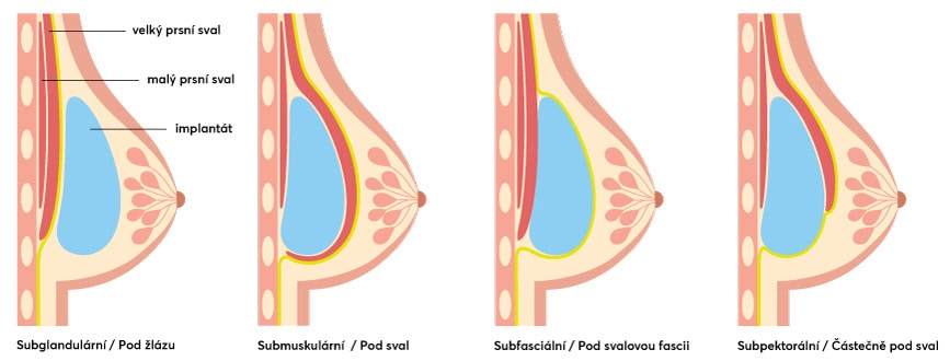 Možnosti umístění prsních implantátů